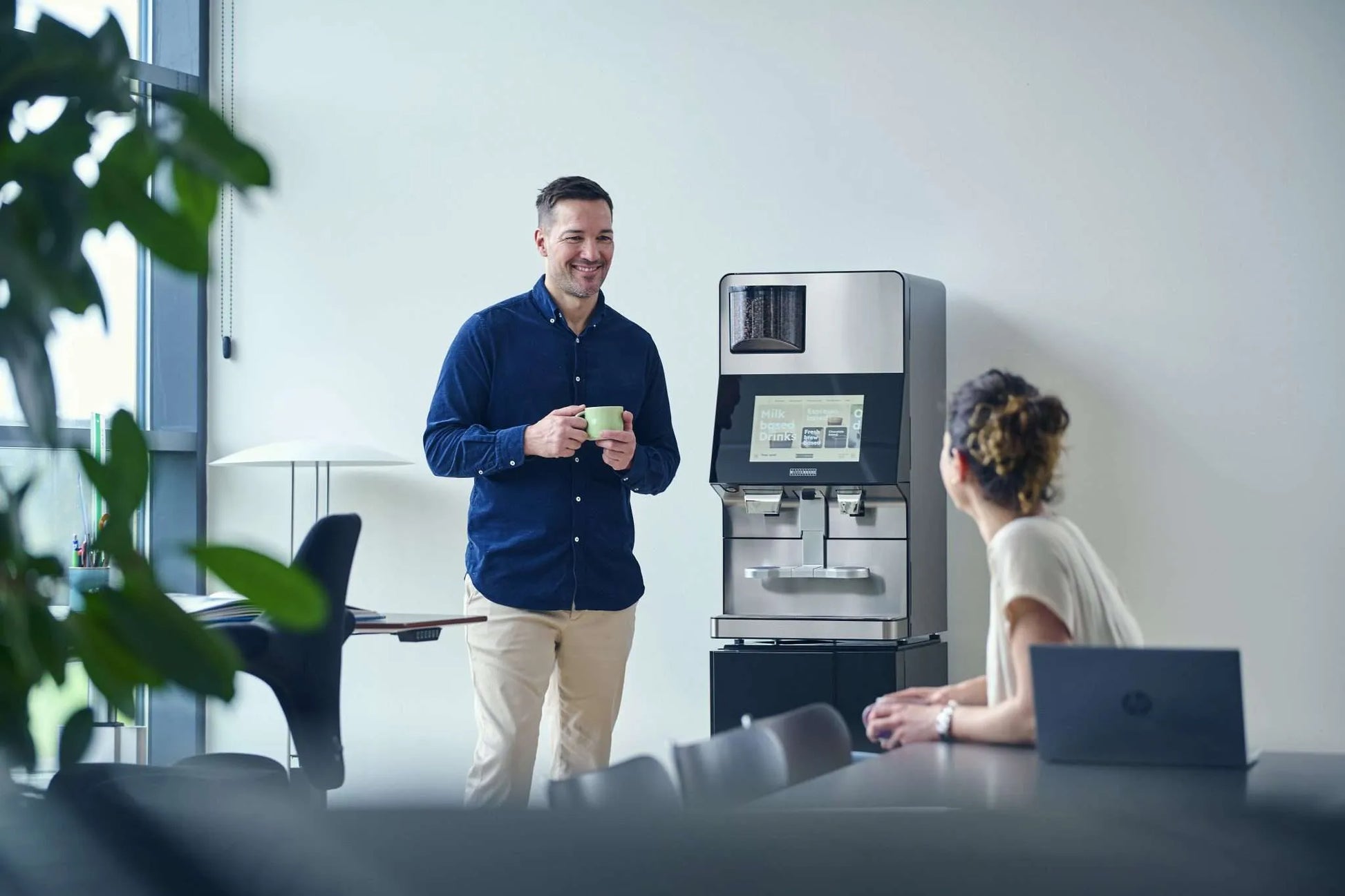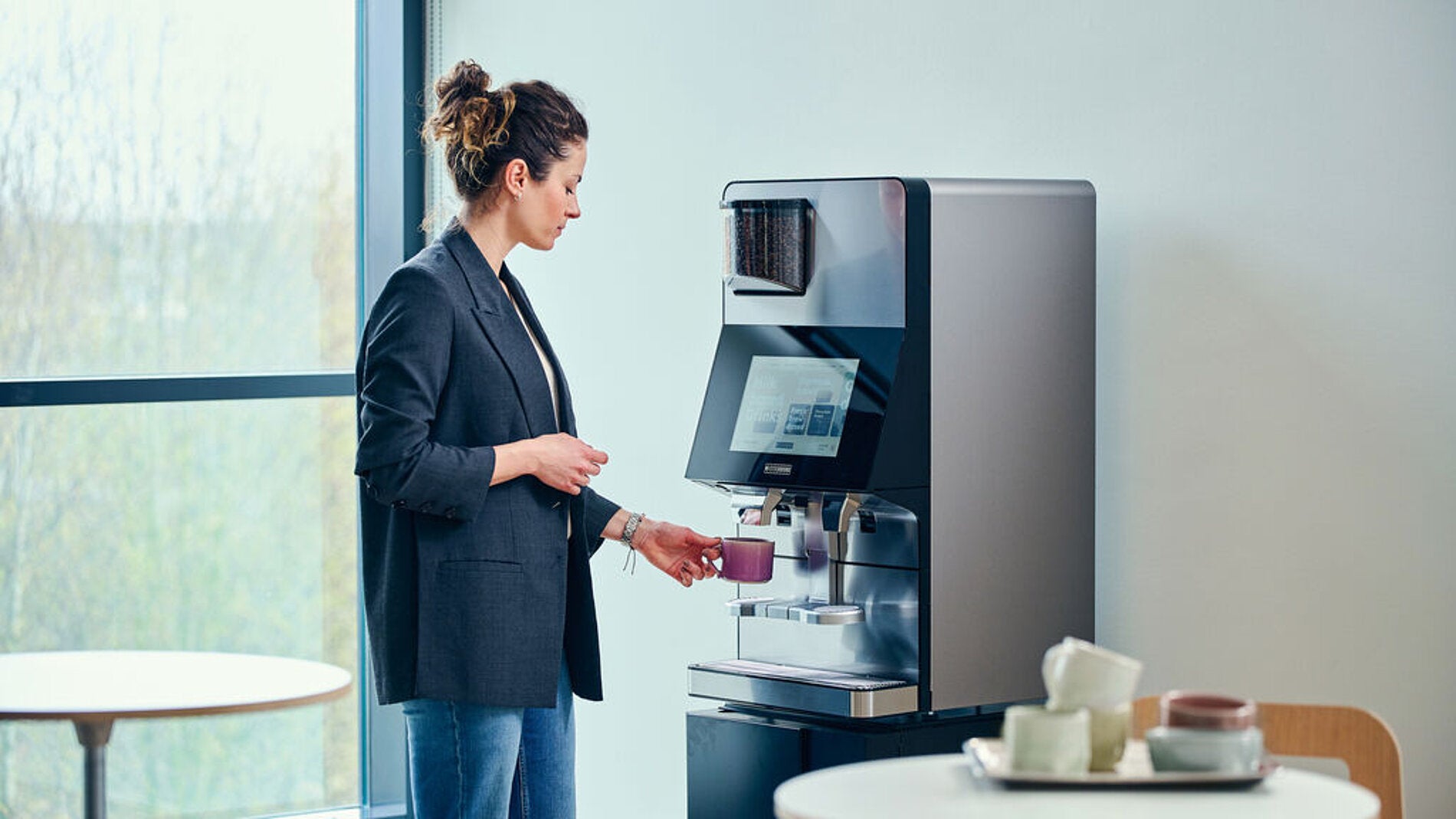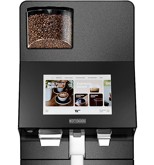 The most versatile. Designed for up to 80 cups per day. Discover the Wittenborg W100, where innovation meets style. Its sleek design is complemented by advanced features to provide a premium coffee experience. The W100 stands out with its intuitive 12” touchscreen and customizable beverage options. It efficiently prepares a variety of drinks, ensuring consistent quality with every cup. Designed for modern spaces, it offers seamless operation and unmatched functionality.