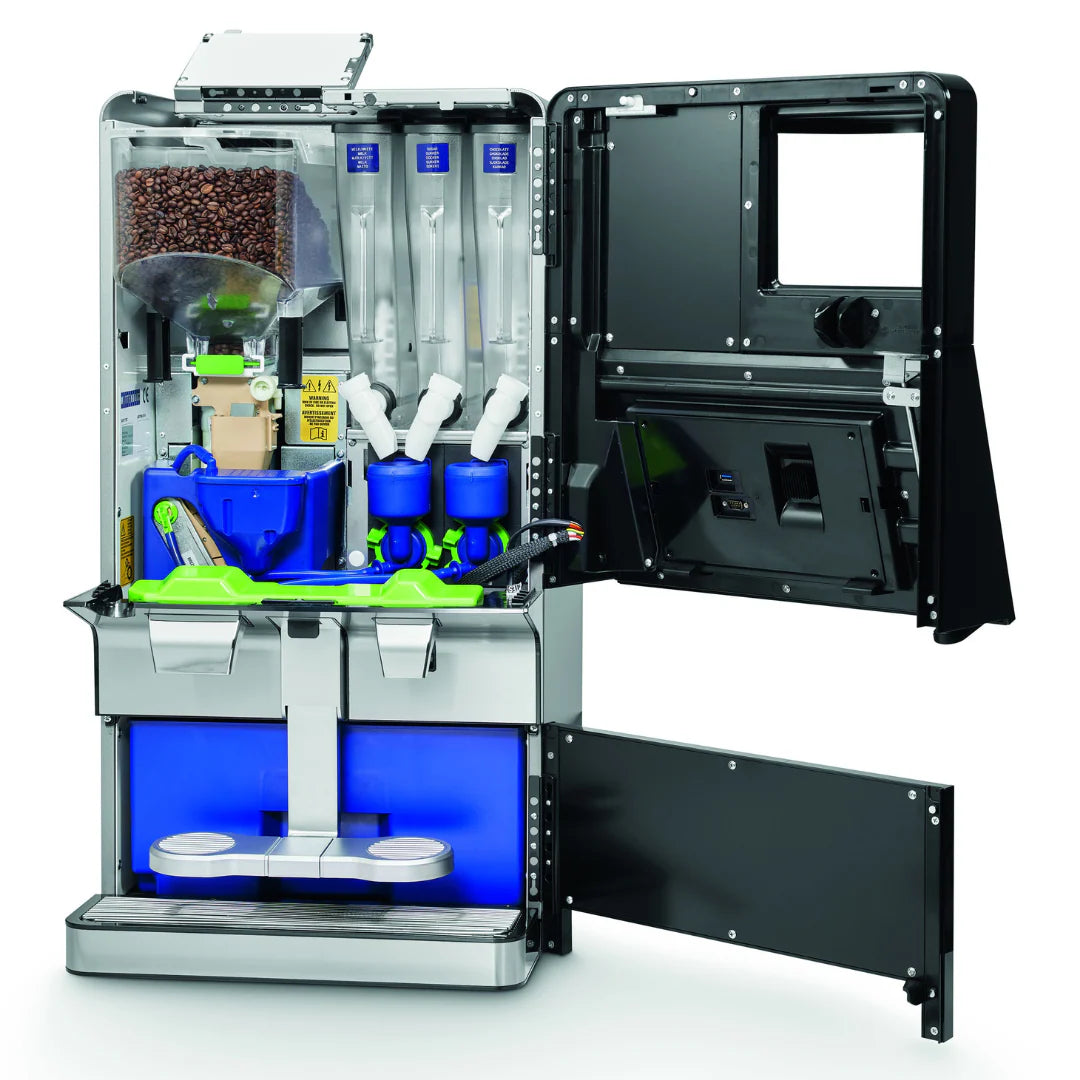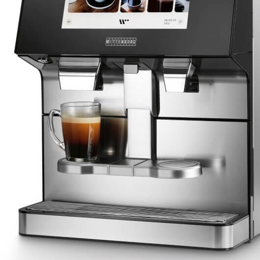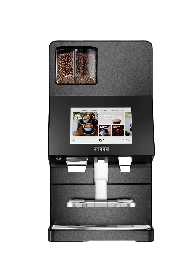 | DESCRIPTION | The most versatile. Designed for up to 80 cups per day. Discover the Wittenborg W100, where innovation meets style. Its sleek design is complemented by advanced features to provide a premium coffee experience. The W100 stands out with its intuitive 12” touchscreen and customizable beverage options. It efficiently prepares a variety of drinks, ensuring consistent quality with every cup. Designed for modern spaces, it offers seamless operation and unmatched functionality. |